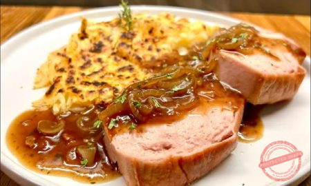 Zutaten (für 2 Personen): Der Leberkäse: 2 dicke Scheiben Leberkäse (ca. 2 cm dick, ca. 150-200g pro Scheibe) Für die Zwiebelsauce (Dunkle...