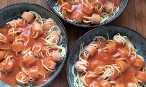 Zutaten: Wiener Würstchen oder Hot-Dog-Würstchen (in ca. 2–3 cm dicke Stücke geschnitten) Spaghetti (ungekocht) Tomatensauce (klassische Marinara oder eine milde Ketchup-basierte Sauce,...