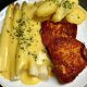 Schnitzel mit Spargel und Sauce Hollandaise ZUTATEN Für die Schnitzel: 4 Schweine- oder Putenschnitzel 2 Eier, verquirlt 100 g Mehl 150 g...
