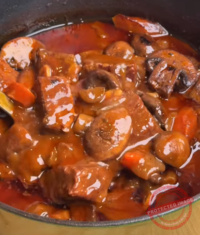 Backofen: Den Topf mit einem Deckel verschließen und im vorgeheizten Ofen bei 160 °C für ca. 3 Stunden schmoren lassen, bis das Fleisch butterweich ist.