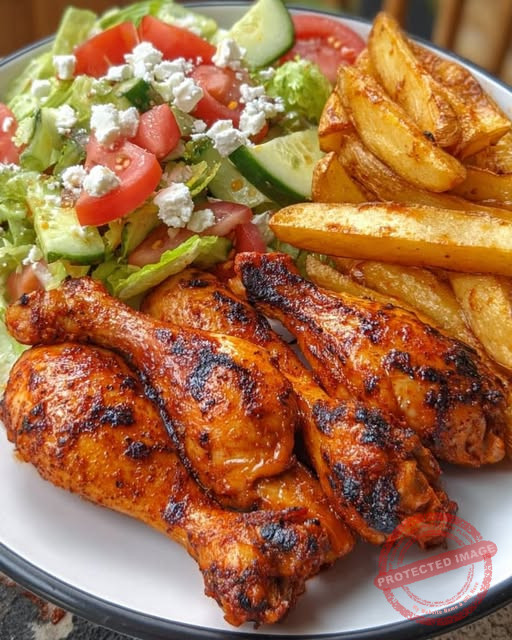 Knusprige Hähnchenunterkeulen mit Ofenkartoffeln und Bauernsalat
