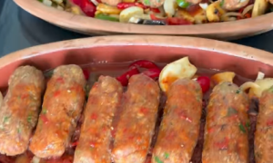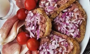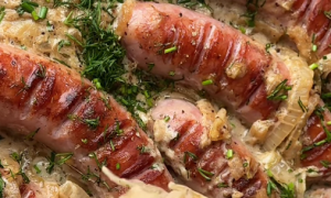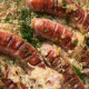 Derweil in einem Topf etwas Fett, Schmalz oder Margarine erhitzen und das Sauerkraut langsam schmoren. Ca. 500 ml Wasser, eine gute Prise Kreuzkümmel, die Wacholderbeeren und die Lorbeerblätter hinzufügen. Nach Geschmack leicht salzen.