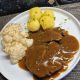 ZUTATEN Für das Fleisch: 800 g Rindfleisch (zum Schmoren, z. B. aus der Schulter) 2 Zwiebeln (gewürfelt) 1 Karotte und ein Stück...