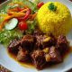 Würzige Rindfleisch-Häppchen auf gelbem Reis mit frischem Salat ZUTATEN Für das Fleisch: 500 g Rindfleisch (in kleine Würfel geschnitten) 2 Knoblauchzehen (gehackt)...