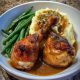 ZUTATEN Für das Fleisch und die Beilagen: 2 Hähnchenschenkel (für einen besonders saftigen Geschmack) 2 Tassen Kartoffelstampf (cremig mit Butter zubereitet) 1...