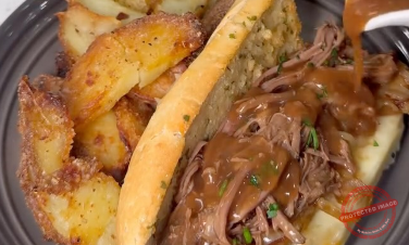 Überbackenes Rinderbrust-Baguette mit knusprigen Kartoffelspalten ZUTATEN (für 2–3 Personen) Für das Fleisch und die Soße: Ein Stück Rinderbrust (für dieses Rezept...