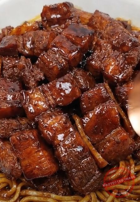 Zarte asiatische Schmor-Rinderwürfel mit Nudeln
