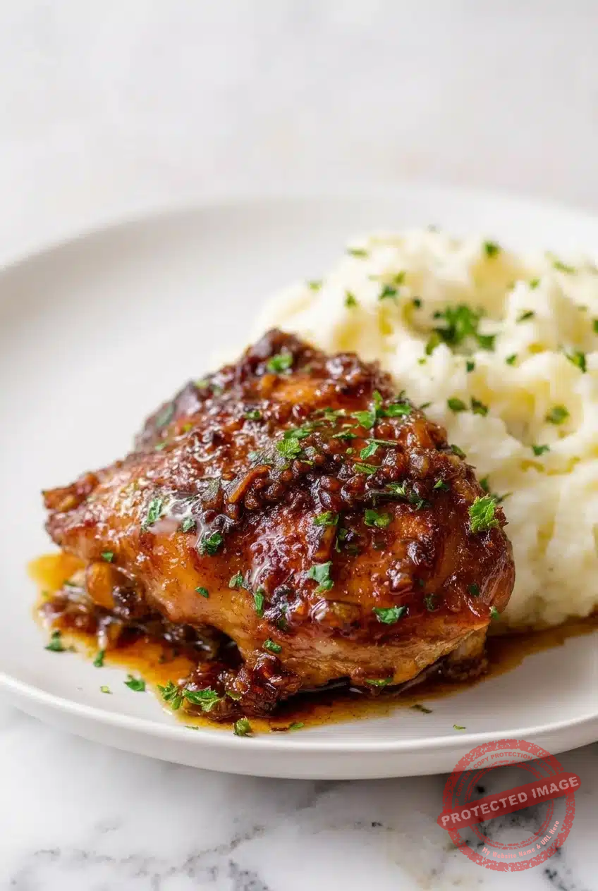 Anrichten: Das Hähnchen mit der glänzenden Sauce großzügig beträufeln. Nach Belieben mit Sesam und frischen Frühlingszwiebeln garnieren.